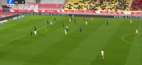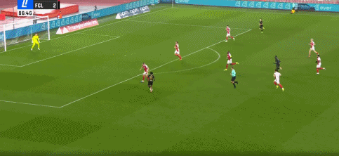 第85分钟,再下一城,德马内-卡里姆助攻马肯戈折射破门,洛里昂2-1